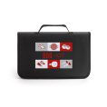Five-piece wooden and stainless steel barbecue set with bamboo board. Kit with 5 utensils and board, supplied with a 210D hard case.