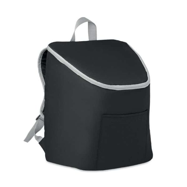 Cooler bag and backpack in 300D/PU polycanvas with front pocket. It has a 2 mm inside aluminium foil.