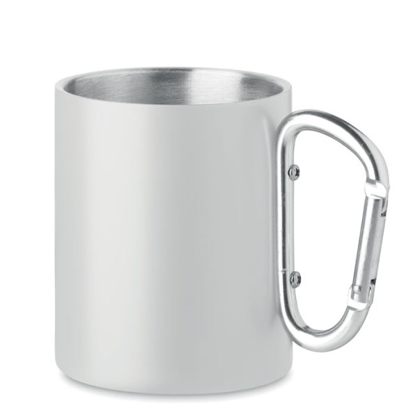 Double wall stainless steel mug, with carabiner handle. Capacity: 300 ml. FMO6873-85