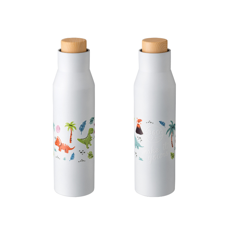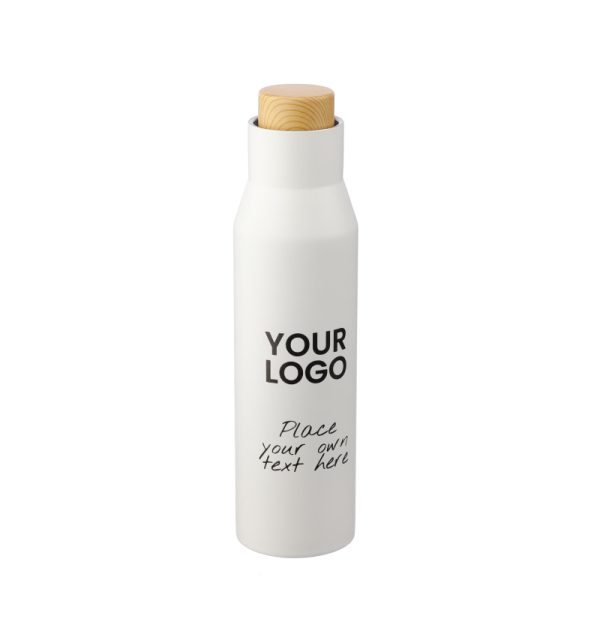 Double walled bottle made form stainless steel 304 with a double wall and a plastic lid with bamboo look. Volume: 500 ml. Individually packaged in a brown cardboard box. Several printing options.
