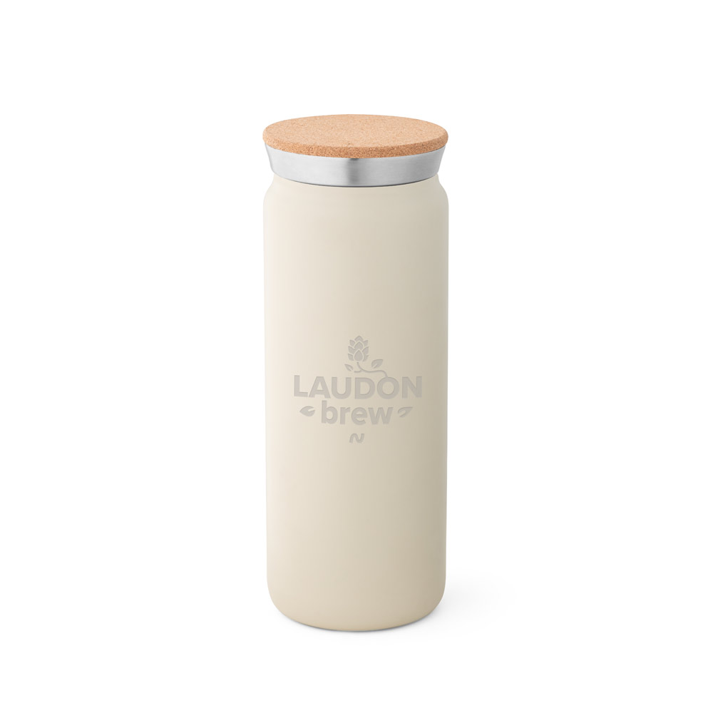 Stainless steel vacuum-insulated double-walled thermos flask with a copper-coated inner wall and cork lid. Bottle with capacity up to 600 mL and keeps drinks hot for 16h and cold for 57h. Supplied in a kraft paper gift box. ø73 x 197 mm
